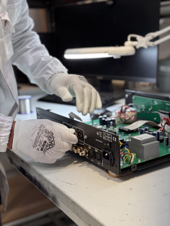 Ogni nostro prodotto nasce da un laboratorio che somiglia più a una bottega artigiana che a una fabbrica. Qui le mani dei tecnici non eseguono soltanto, ma modellano il suono come fosse materia viva: saldature precise, controlli meticolosi, dettagli che trasformano la tecnologia in arte. Questo è il cuore dell’artigianalità Eamlab: la convinzione che la vera qualità nasca dalla dedizione e dal tempo che si decide di investire in ogni singolo componente.