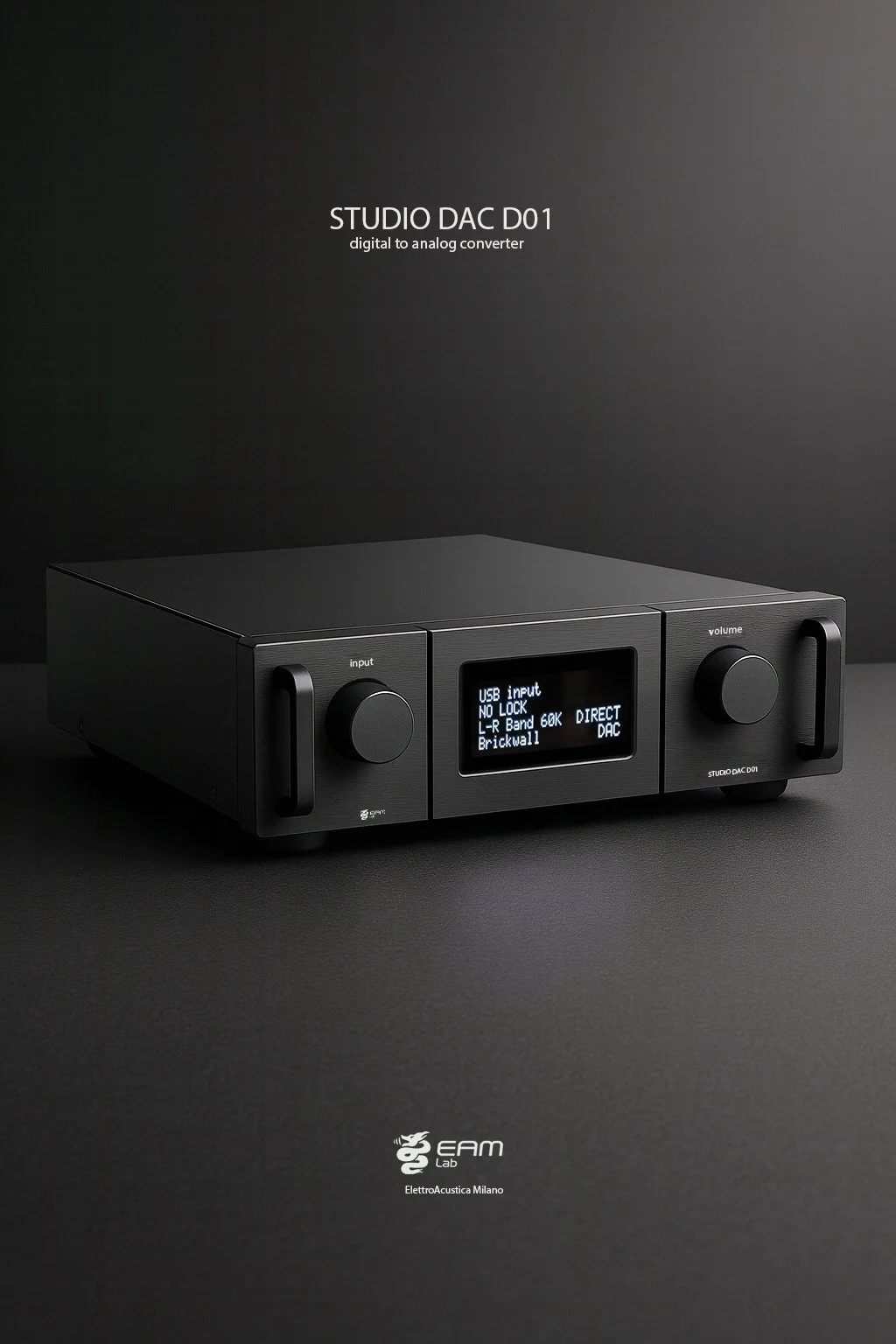 Nel 2014 EamLab presentò il Musica D101, un DAC capace di prestazioni notevoli, innovativo e dotato del primo chip di conversione a 32 bit. Oggi, nel 2025, inauguriamo un nuovo capitolo con lo STUDIO D01, completamente riprogettato e pienamente preparato per i più recenti formati audio ad alta e altissima risoluzione.